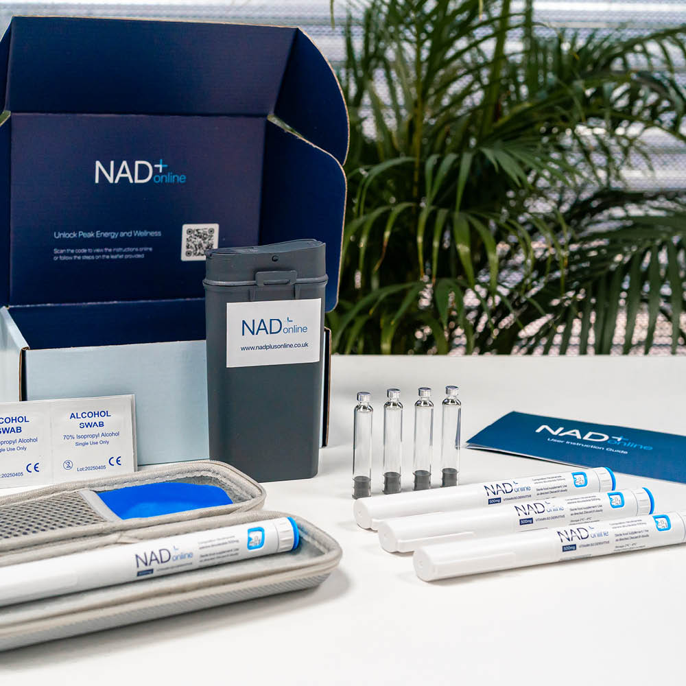 Our NAD+ Online Kits provide you with easy-to-use injections or supplements designed to deliver NAD+ directly into your system, helping you maintain healthy NAD+ levels from the comfort of your home.